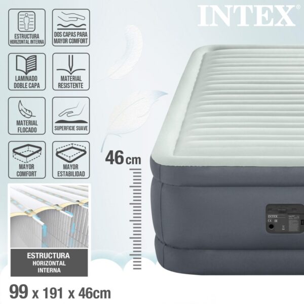 Die Intex-Matratze 64482 hat eine Höhe von 46 cm und ist somit im Vergleich zu anderen herkömmlichen aufblasbaren Matratzen höher und komfortabler. Das Produkt ist für die Nutzung beim Camping, im Haus oder draußen, für Momente der Entspannung oder für unerwartete Gäste gedacht.