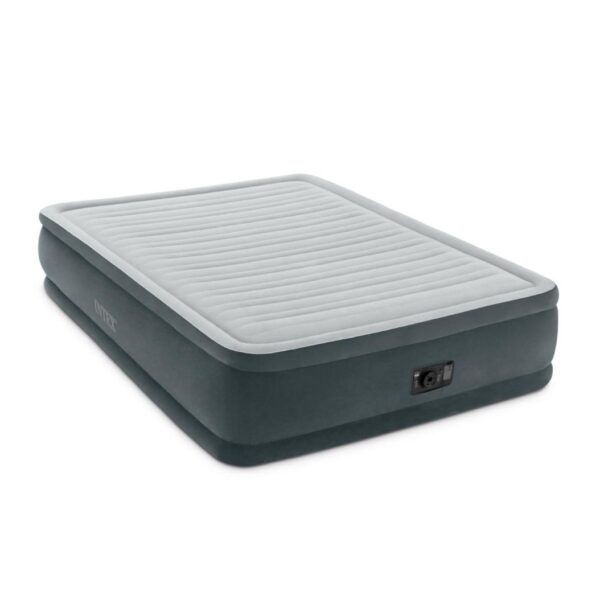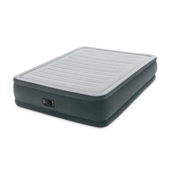 Das Queen Airbed Elevated Premium Comfort bietet erstaunlichen Halt und dauerhaften Komfort. Die Fiber-Tech-Trägerkonstruktion besteht aus Tausenden von hochfesten Polyesterfasern die für mehr Komfort, Stabilität und Halt sorgen. Die Liegefläche ist mit einer qualitätsgeprüften weichen Beflockung für zusätzlichen Komfort versehen. Eine eingebaute interne elektrische Pumpe bläst das Luftbett mit einem Knopfdruck auf und lässt es ab und kann verwendet werden, um den gewünschten Grad an Festigkeit einzustellen. Die ungefähre Aufblaszeit beträgt 4 Minuten. Die praktische Tasche eignet sich perfekt zur Aufbewahrung und zum Transport. Eingedrückte Seiten sind perfekt positioniert, um die Spannbetttücher sicher in Position zu halten.